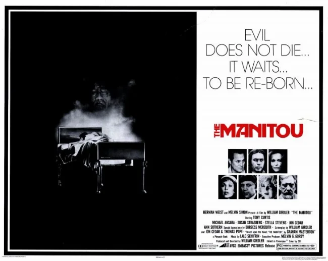 After the commercial success of The Exorcist in 1973, the low budget independent horror films of Hammer and American International fell into decline. The major Hollywood studios started financing more expensive genre movies. Twentieth Century Fox scored a box office hit with The Omen in 1976 proving once again that the supernatural was financially viable. Subsequently several independent film financiers realized that they would have to invest in bigger budget projects if they wished to compete. William Girdler’s 1978 adaptation of the bestselling horror novel, The Manitou, was one such example of this.
