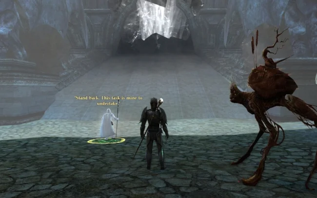 As I mentioned, LOTRO excels at including many minor facets of Professor Tolkien’s source text into the MMO. I read a post recently on BioBreak regarding a quest chain in North Ithilien that ends with Gandalf entering the Morgul Vale and destroying the bridge to Minas Morgul. It is a small aspect of the story and not in any way essential to the overall plot. It is however a fine embellishment to the game. I hadn’t done this particular instance myself and when I checked my quest log, found an unfinished series of quests that led to this event. Needless to say, I completed them and got to experience this interesting vignette myself.