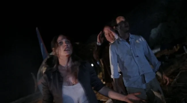 Tape 407 starts aboard a plane with a motley collection of passengers travelling from New York back to Los Angeles. We meet film student Jessie (Samantha Lester) and her annoying younger sister Trish (Abigail Schrader), Journalist Jimmy (James Lyons) and irritable passenger from hell Charlie (Brendan Patrick Connor). After some rather pedestrian back story and character exposition the plane crashes in a somewhat remote desert region along its route. The survivors bicker and squabble and continuously talk across each other as they try to thrash out a survival strategy. One passenger goes looking for the other half of the plane. Screams and animal noises are later heard in the night. It quickly becomes clear that there are multiple predators on the loose.
