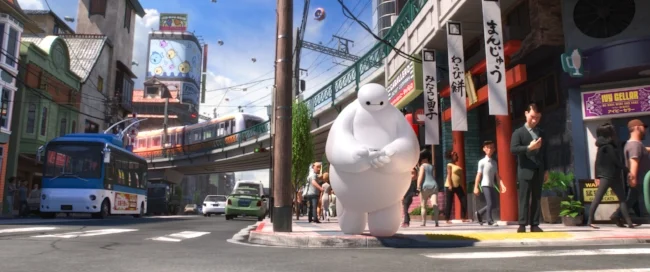 There is a beautiful aesthetic to the city of San Fransokyo and I cannot remember the last time a saw a animated movie with such a fascinating production design. Several times whilst watching I found myself pausing the playback so I could examine the subtleties of the environment. The use of lighting is outstanding and it is clear where the $165 million production cost went. The blending of US and Japanese culture makes for a very striking visual landscape as many familiar landmarks and iconic buildings are given an inventive cross cultural makeover.