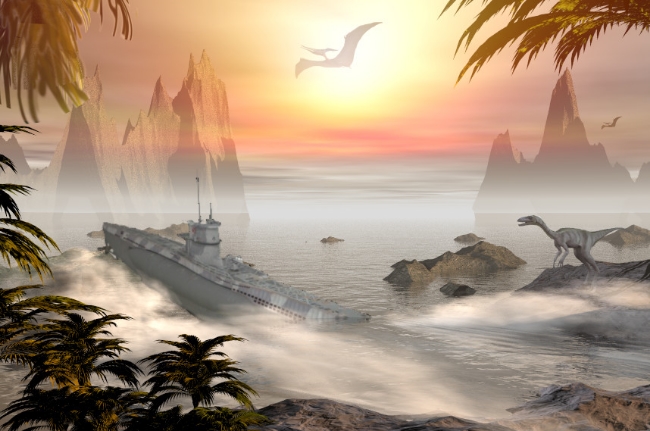The Land That Time Forgot is the first part of Edgar Rice Burroughs’ “Caspak” trilogy of science fantasy novels. Commencing as a wartime sea adventure, hence its original working title of The Lost U-Boat, Burroughs’ story ultimately develops into a saga with similarities to Sir Arthur Conan Doyle’s The Lost World and Jules Verne’s The Mysterious Island. What makes Burroughs work unique is his plot device of a biological system specific to his island, in which the slow progress of evolution manifests itself as individual metamorphosis. This biological feature is only implied in The Land That Time Forgot and explored in greater depth over the course of the next two novels, The People That Time Forgot and Out of Time’s Abyss.