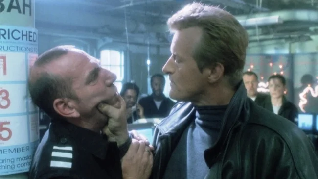 Split Second has great aspirations. Sadly they’re totally beyond the movies budget, the quality of screenplay and the ability of director Tony Maylam. The poster clearly demonstrates this with the rather bold tagline of "Blade Runner meets Alien". The reality is somewhat different. Furthermore Split Second seems to be from the wrong decade. Despite being a nineties sci-fi action movie it has all the hallmarks of one from ten years prior. The Director of Photography relies on a wealth of neon lighting to try and create a suitable atmosphere. The costume design is heavily based on leather clothing and outfits that accentuate the shoulders. There's also a drab and grating electronic score that was synonymous with this genre during the eighties. Overall Split Second certainly has a lot of strikes against it.