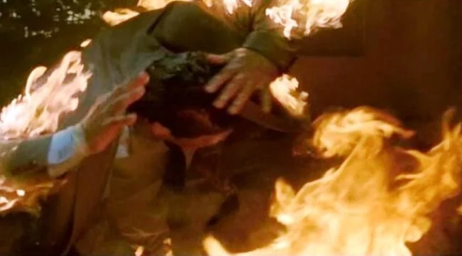 After a second viewing of The Soldier some thirty four years later the flaws are more glaring obvious than ever but also far more understandable. Director, writer and producer James Glickenhaus simply ran out of money. The budget was mainly blown on the various action sequences and their respective international locations. This is why after such an initially promising premise the story fizzles out in the final act. Characters vanish and the ending is very underwhelming and over too quickly. This is very much a film of two halves. Still it is not without interest, featuring two standout stunts. The first being a spectacular high fall from an exploding cable car, a scene that turned up in several commercials at a later date. There's is also an excellent slow motion full burn, caused by a booby trapped light bulb.
